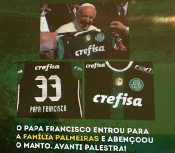 O pontífice recebeu na semana retrasada uma camisa personalizada do clube Alviverde das mãos de um cartola. As fotos do evento foram utilizadas em uma propagada da Crefisa no jornal Estado de São Paulo.
