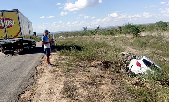 O motorista do carro identificado pelo prenome Lucas, que é funcionário da agência do Bradesco de Valente, não ficou ferido. Ele disse que chegou a buzinar, mas não teve como evitar batida. Com o impacto da colisão, os veículos foram parar fora da pista, em lados opostos da rodovia. O carro possui seguro e o guincho da seguradora foi acionado, mas até por volta das 15h o veículo permanecia no local. A moto foi removida por populares.
