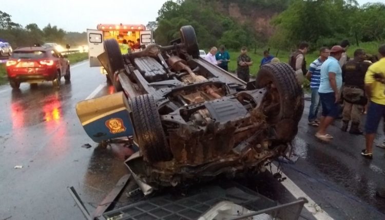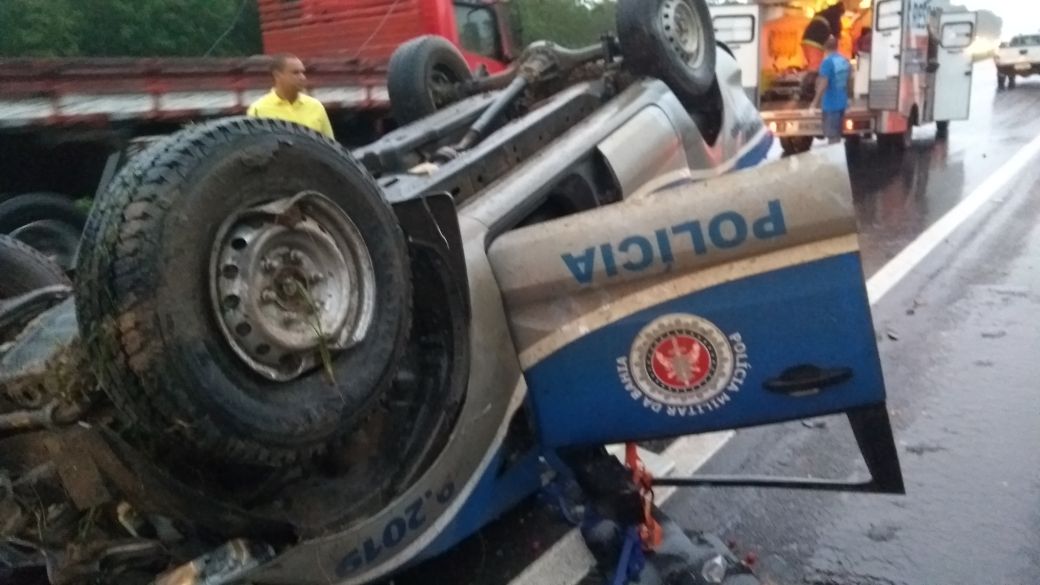 Uma viatura da 20ª Companhia Independente da Polícia Militar (CIPM) capotou na tarde deste sábado (27) no KM 546, sentido Salvador/Feira, na BR-324 na conhecida Ladeira da Embira no trecho da cidade de Amélia Rodrigues. De acordo com informações da Polícia Rodoviária Federal (PRF), no momento do acidente estavam os soldados Gama, Maciel, Castro, Márcia e Roseane Freitas. Todos da cidade de Santo Amaro.