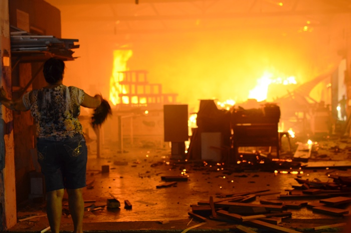 Na proporção que as chamas aumentavam, chamava a atenção do público, houve inicio de pânico e um grande número de pessoas foi para frente dos depósitos, arrombaram as portas e começaram a retirar as peças de Maderito e outras madeiras que estavam armazenadas na área distante das chamas. Um caminhão-pipa do PAC chegou ao local ás 20h40 e ajudou no combate das chamas.