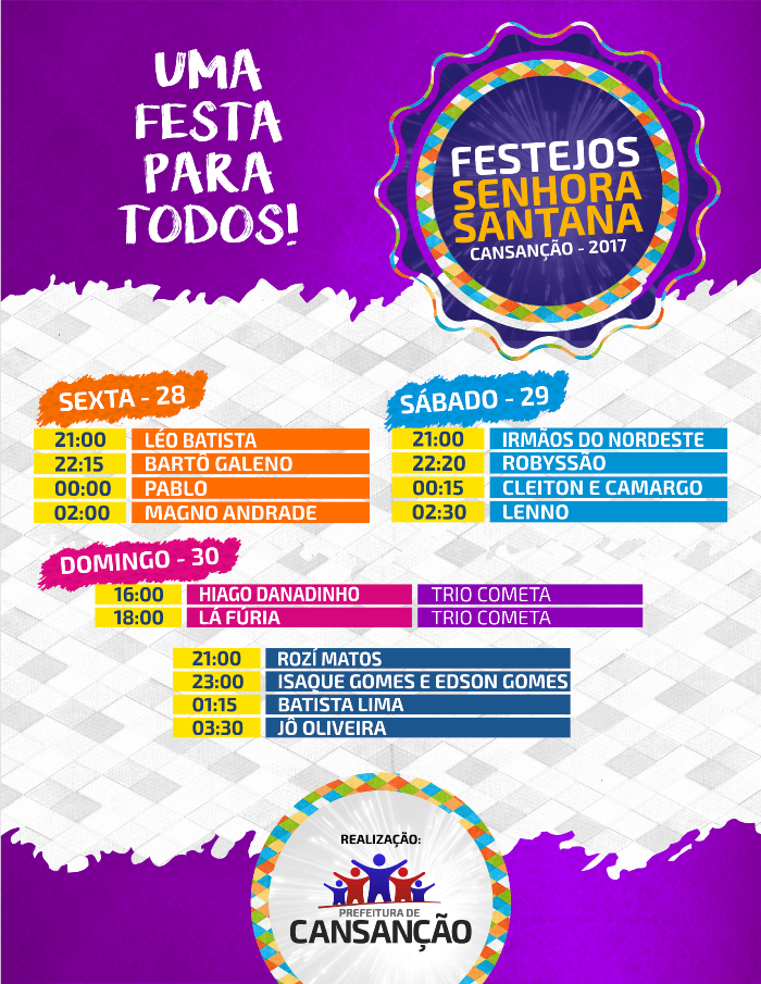 Conforme o jovem prefeito Paulo Henrique Passos, a coordenação da festa pensou numa grade que agradasse a todo público e quem participar da festa vai poder curtir o romântico Bartô Galeno a Robyssão.