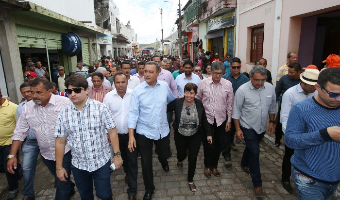O helicóptero que conduzia o governador acompanhado pelo secretário de Infraestrutura Marcos Cavalcante e do secretário de Recursos Hídricos Cássio Peixoto aterrissou no estádio municipal às 09h30. Após cumprimentar as autoridades, Rui Costa e toda comitiva seguiu a pé até a frente da igreja matriz onde foi montado o palanque, acompanhado a Fanfarra e uma banda de pífano como ocorre na maioria das cidades que visita. Já no palanque as lideranças assistiram a uma apresentação da Filarmônica 4 de Janeiro que tocou o Hino 2 de Julho.