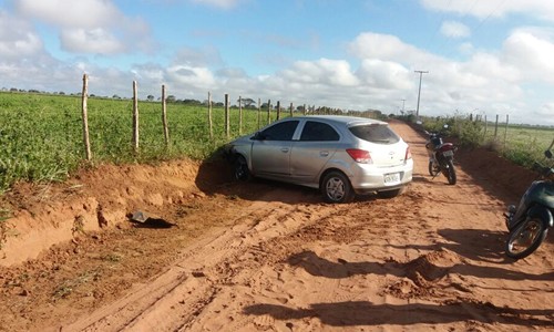 Após colherem dados e serem informados que os criminosos teriam fugido sentido a estrada que dá acesso à Fazenda Juliana, zona rural do município, os militares passaram a fazer uma busca pela região. Quando chegaram à localidade do Tabuleiro, ainda na zona rural, encontraram o carro utilizado no crime. O veículo teria sido abandonado, após os criminosos perderem o controle da direção, e se chocar com algumas cercas.