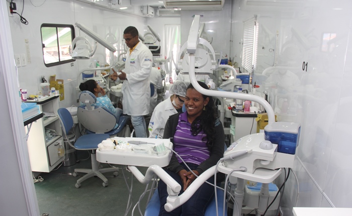 São sete unidades viajando pelo interior do estado, sendo uma de porte maior, com capacidade de atender 140 pacientes dia, totalizando de 800 pacientes por semana, com 10 dentistas e as outras com capacidade de 670 atendimentos semanal. Além de Santaluz, outras 300 cidades já foram beneficiadas com este serviço esse ano.