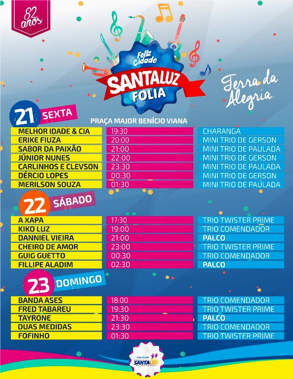 Veja quem passou e quem ainda vai passar pelo palco e trios no Santaluz Folia