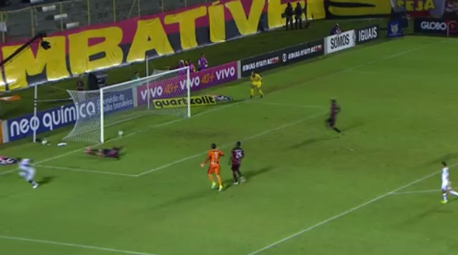 O esforço do Rubro-Negro veio aos 25. Kanu, que havia marcado contra, desta vez fez certinho. O zagueiro aproveitou o cruzamento de Patric e mandou no canto esquerdo do goleiro cruz-maltino. Não durou muito a igualdade. Quatro minutos depois, aos 29, Guilherme deu ótimo passe para Thalles, que driblou o goleiro Fernando Miguel e mandou de perna esquerda para a rede: 2 a 1 para os visitantes.