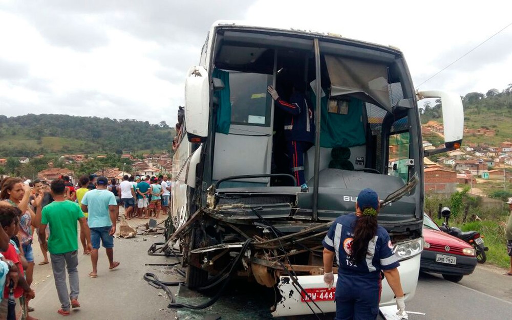 Acidente entre ônibus e carro deixou três mortos na Bahia (Foto: Giro Ipiaú)