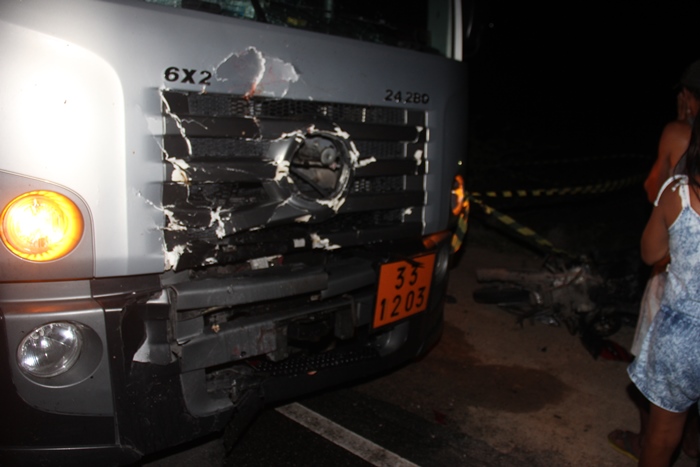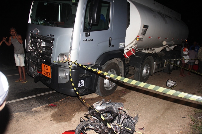 De acordo com a PRE a única coisa que se sabe é que o caminhão seguia no sentido Santaluz, estava parado totalmente na contra mão e que bateu de frente com a moto que seguia no sentido Casas Populares.
