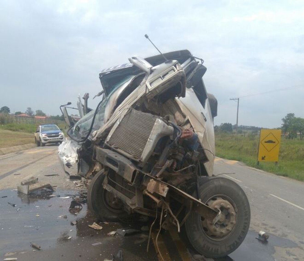 Motorista sai ileso de acidente que deixou cabine de caminhão destruída