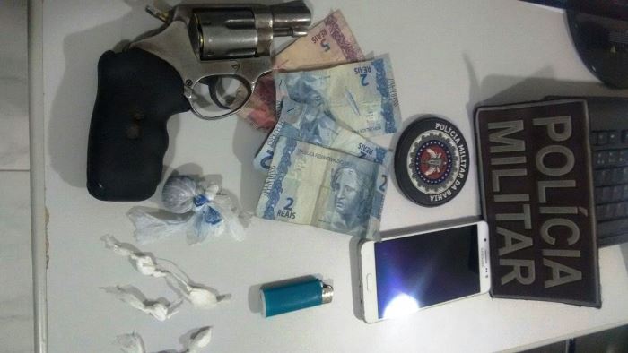Ainda de acordo com a PM, com o adolescente foram encontrados um aparelho celular de marca Samsung, cinco papelotes de uma substância que aparenta ser cocaína, um isqueiro, R$ 11 em espécie e na parte interna, após a grade da residência, foi encontrado um revólver calibre 38 com cinco munições intactas, marca e numeração suprimidas, dispensado por ele durante a fuga.