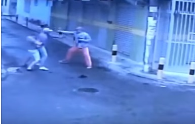 As imagens de segurança mostram quando o comerciante briga com o ladrão. A vítima usa o próprio bandido como espécie de “escudo” para tentar se proteger do outro criminoso, mas acaba sendo atingido. Quando ele cai no chão, o ladrão se aproxima, dá um chute e atira de novo.