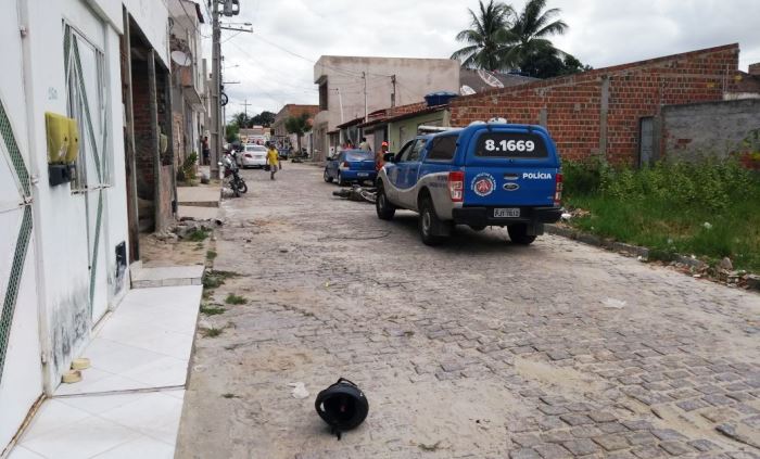 (Obs: inicialmente foi dito que a motocicleta no chão pertencia a vítima, mas a PM enviou nota oficial dando conta que foi usada pelos criminosos)