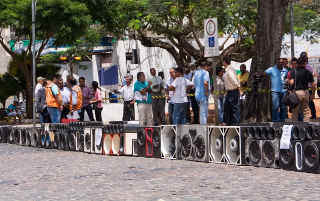 Um total de 1.126 equipamentos de som foram destruídos nessa quinta-feira (9), na Praça do Fórum, em Feira de Santana. A ação fez parte do Programa Feira quer Silêncio, da Secretaria Municipal de Meio Ambiente.