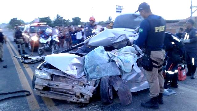 Segundo o inspetor da Polícia Rodoviária Federal (PRF) George Paim houve uma colisão frontal entre o caminhão-baú, de placa EJF-0105 (licença de Feira de Santana), e o automóvel Celta, de placa JOO-7905 (licença de Pé de Serra), com sete ocupantes, todos da mesma família.