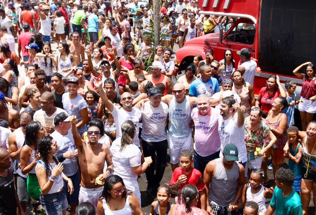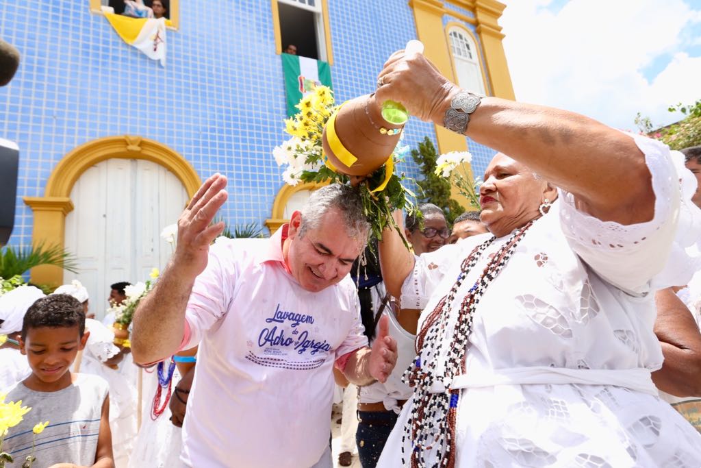 Angelo Coronel, ao lado de seu filho Diego Coronel, acompanhou o cortejo formado por baianas, integrantes dos Filhos de Gandhy, Filarmônica São José, Boi Janeiro e pojucanos pelas ruas da cidade até o adro da Matriz de Senhor Bom Jesus da Passagem. Uma grande multidão prestigiou a festa, que não acontecia desde 2013. “Retomamos o diálogo com a Igreja, através do Padre Cláudio, e resgatamos a tradição da Lavagem do adro da Matriz. Apesar do caráter profano da Lavagem, não podemos nos esquecer nunca do espírito religioso que a inspirou”, declarou o prefeito de Pojuca, Duda Leite.