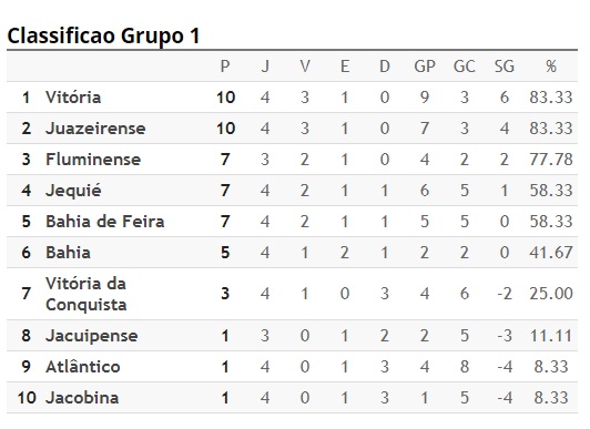 Vitória que derrotou o Bahia de Feira por 3 a 0 e a Juazeirense que venceu o Vitória da Conquista fora de casa por 2 a 1, chegaram a 10 pontos e colocaram 5 de frente do Bahia que ao fim da 4ª rodada permaneceu em 6º lugar.