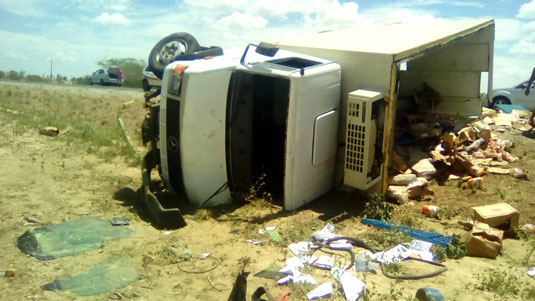 Um caminhão-baú Mercedes Benz/914, com placas de Riachão do Jacuípe, carregado de frios tombou no trecho da BA-120 que liga os municípios de Santaluz e Queimadas na altura da estação da Embasa, por volta do meio-dia desta quinta-feira (1).