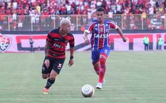 O cronômetro mal tinha sido disparado quando o Vitória protagonizou a primeira investida do jogo. Nos primeiros segundos de bola rolando, Pedro Botelho cobrou lateral, Neilton desviou de cabeça, mas a bola ficou com Douglas. O goleiro tricolor trabalhou muito no começo da etapa inicial. Antes, Vinícius arriscou de longe. Mandou pra fora, mas assustou Fernando Miguel.