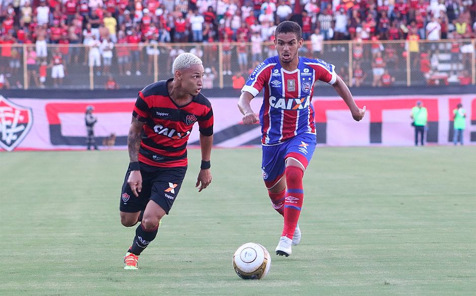 O Vitória dominou as iniciativas em mais da metade do primeiro tempo, mas o Bahia equilibrou o jogo nos minutos finais. Aos 32, Vinícius levantou na área, mas Edigar Junio não conseguiu chegar na bola. Nos acréscimos, a melhor investida tricolor da etapa inicial. Marco Antônio cruzou, Edigar rolou para Zé Rafael, que bateu contra a meta rubro-negra. A redonda tinha endereço, mas Fernando Miguel conseguiu espalmar para fora.