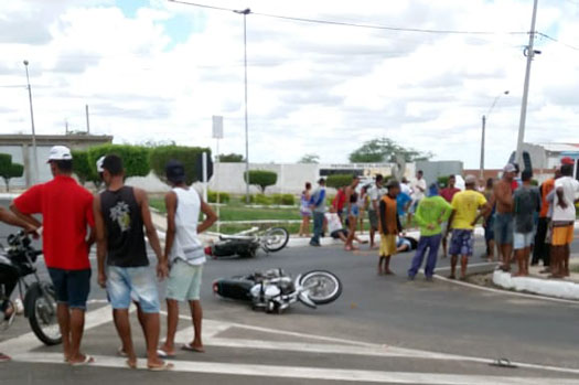 Uma colisão envolvendo duas motos deixou três feridos, no fim da manhã, no contorno da BA-120, no perímetro urbano de Santaluz, região sisaleira da Bahia. O mototaxista Ivanilton Queiroz Santos e o passageiro Israel Santos Cupertino, de 57 anos, além de outro homem identificado como Luiz de Matos, 48, foram lançados no asfalto com o impacto. Eles foram encaminhados para o hospital da cidade, onde permaneciam internados até por volta das 15h.