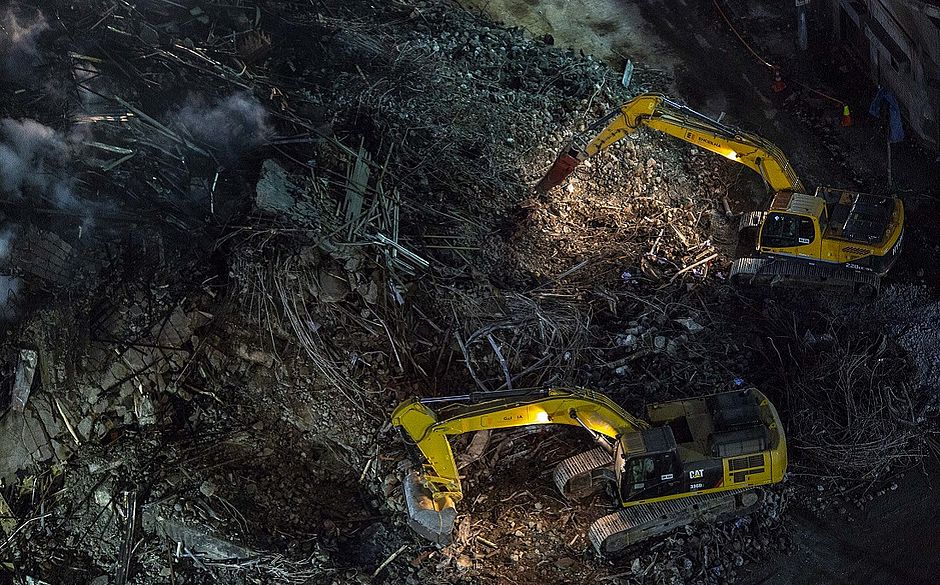Duas máquinas pesadas começaram a trabalhar na retirada de escombros e na busca por sobreviventes por volta das 6h de hoje, quando os bombeiros deram início ao uso de mais um rompedor e uma retroescavadeira.