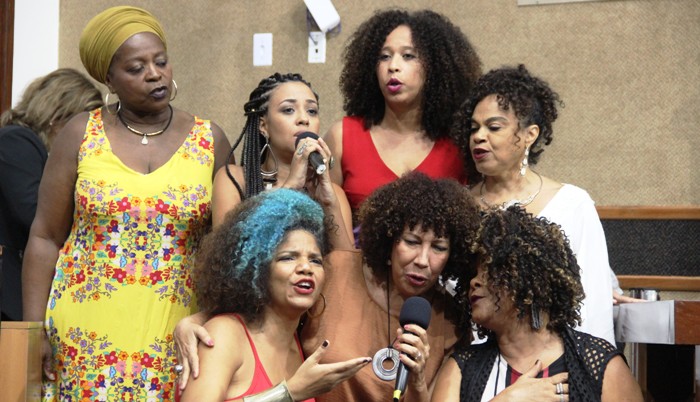 A Secretária Estadual de Políticas para as Mulheres, Julieta Palmeira, destacou a participação de sete contaras negas durante a sessão. As cantoras Manuela Rodrigues, Matildes Charles, Juliana Ribeiro, Marilda Santana, Marcia Short, Ailce e Clécia Queiroz. “Essas sete vozes de mulheres negras que ecoaram aqui, cada uma corresponde a um ano de existência da Secretaria de Mulheres. Além de serem cantoras espetaculares, são cantoras negras”, reafirmou. A banda Didá, composta por mulheres, também se apresentou.