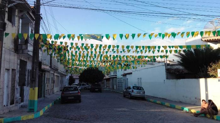 O Calila Noticias percorreu ruas do centro e de bairros de Conceição do Coité para registrar a animação dos coiteenses em relação a seleção brasileira que estreia neste domingo, 17, na Copa do Mundo da Rússia, e constatou que se tomar como base a quantidade de ruas e pessoas vestidas com camisas ou portando bandeira do Brasil, a seleção canarinho terá a torcida mais desanimada de todos os tempos, porém, nossa equipe encontrou na Rua Professor Olavo Pinto, uma pessoa que mantém a alegria e sua torcida pela seleção. Estamos falando do Senhor Esmeraldo Carneiro, 90 anos, que vive a expectativa de acompanhar mais uma copa do mundo, mas para isto era preciso que se ornamentasse a rua onde mora.