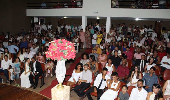 O auditório do Centro Cultural Ana Rios de Araújo em Conceição do Coité que sempre é usado para apresentação teatral, dança, música, formatura, entre outras atividades, foi utilizado na noite desta sexta-feira, 08, para algo raro de ser ver na cidade, casamento coletivo.