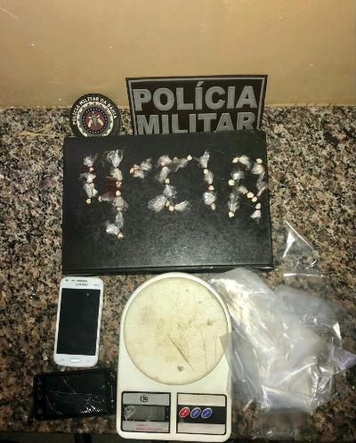 Por volta das 12h30 desta quarta-feira, 06, a guarnição da 4a Companhia ao realizar rondas no bairro Cidade Jardim, avistou um indivíduo identificado por Alef Rodrigues Santos de Souza, 23 anos, a bordo de uma mototáxi em atitude suspeita. Quando revistado, o mesmo não estava com drogas, mas informou que tinha os entorpecentes guardados em um bloco na Praça do Bairro Cidade Jardim, onde o material foi encontrado.