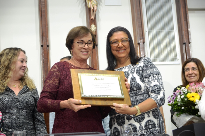 Neusa recebe a honraria das mãos da deputada Ângela Souza | Foto: Raimundo Mascarenhas