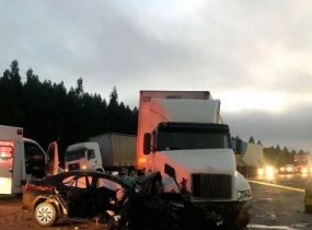 Não há mais informações sobre o estado de saúde deles. O acidente ocorreu devido a uma colisão entre o carro, onde as vítimas estavam, e um caminhão. Com o impacto da batida, o veículo ficou destruído. Segundo a Polícia Rodoviária Federal (PRF), o motorista do caminhão seguia no sentido sul e o carro ia em direção contrária.