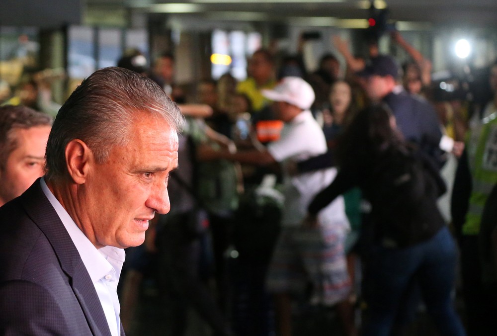 Tite também causou alvoroço ao deixar o aeroporto. Antes de guardar a bagagem no carro, acenou para os torcedores e agradeceu rapidamente ao atender a imprensa.