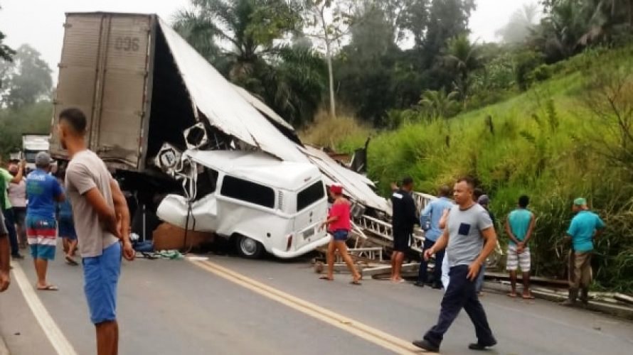 Um engavetamento envolvendo três caminhões e uma kombi deixou cinco pessoas mortas e quatro feridas, na manhã desta terça-feira (10), na cidade de Ibirapitanga, no sul da Bahia. De acordo com informações da Polícia Rodoviária Federal (PRF), o acidente ocorreu por volta das 9h, no KM-428 da BR-101.