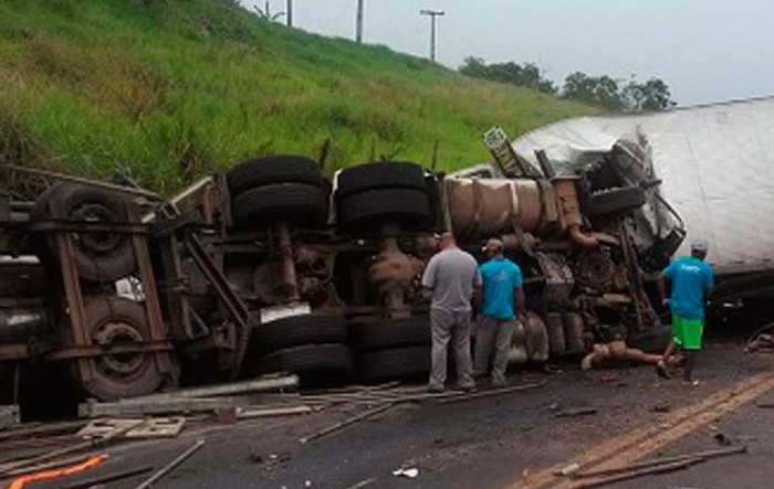 Um dos caminhões envolvidos na batida era tanque e transportava piche – material que é usado na produção de asfalto. De acordo com testemunhas, o veículo tombou em uma curva e atingiu os outros dois caminhões, do tipo baú, que vinham atrás.