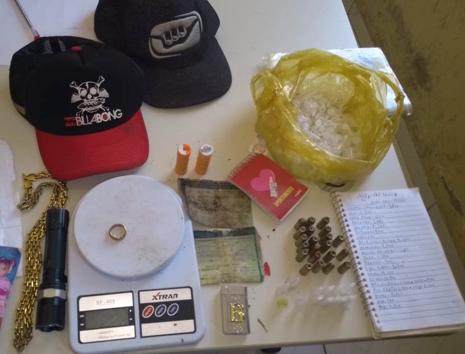 Durante a operação, foram encontrados nos acampamentos abandonados às pressas pelos alvos duas motos, cocaína, balança de precisão, munições, cadernos com anotações e objetos pessoais dos criminosos.
