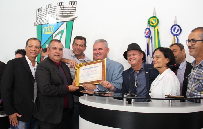 Uma unanimidade rara, assim pode se considerar o que foi visto em Riachão do Jacuípe na manhã desta quinta-feira (12) na Câmara Municipal, quando todos os vereadores, sendo eles da situação e oposição que votaram a favor da entrega de titulo de Cidadão Jacuipense e Moção de Aplauso ao presidente da Assembleia Legislativa da Bahia Angelo Coronel (PSD), também prometeram se empenhar na campanha para elegê-lo senador da república pela chapa do governador e pré-candidato a reeleição Rui Costa (PT). A indicação do titulo e da moção foi autoria do presidente da Câmara Antônio Marcos (PP) popularmente conhecido por Marquinho Leão, que também encabeça o apoio a eleição de Coronel.