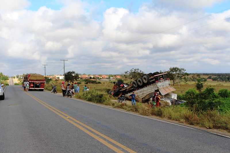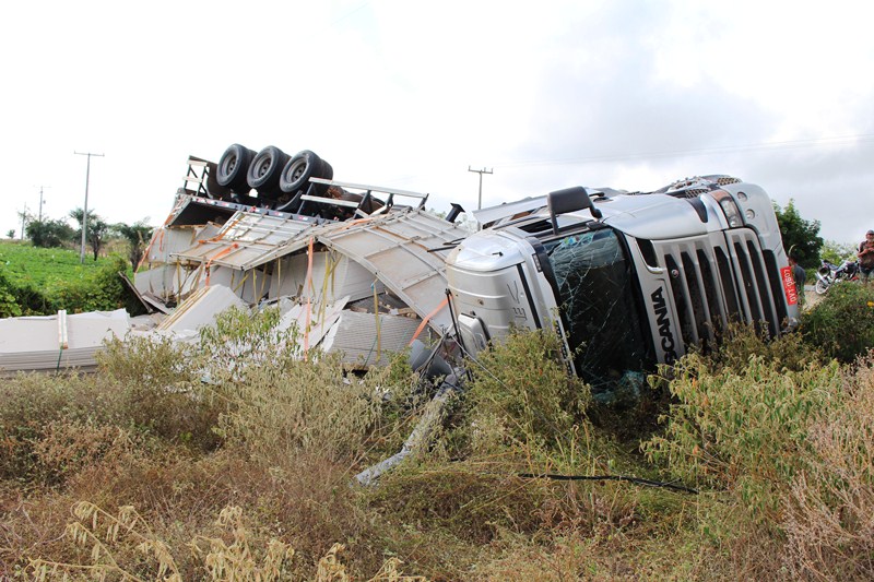 O veículo ainda atingiu um poste da rede elétrica antes de tombar. O motorista disse que estava seguindo do estado do Ceará para Brasília-DF. Ele sofreu ferimentos leves.