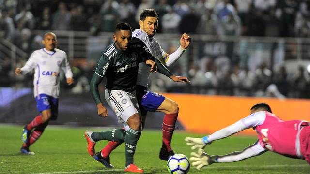 O Tricolor baiano tinha mais o domínio territorial, jogava no campo de ataque. O Palmeiras, apesar de ser o mandante, procurava o contra-ataque. Quase abriu o placar assim, aos 26, quando Willian teve a chance, mas finalizou em cima do goleiro Anderson. O Palmeiras melhorou e ainda teve outra chance clara, com Moisés, mas ele também chutou no corpo de Anderson, que saiu muito bem do gol.