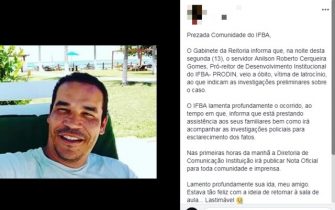 O Ifba decretou, na segunda-feira, luto oficial de três dias e suspendeu as atividadades na instituição. Por meio de nota, o Instituto lamentou a morte de Anilson, que foi o responsável por implantar novas unidades do Ifba no interior da Bahia.