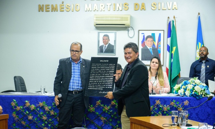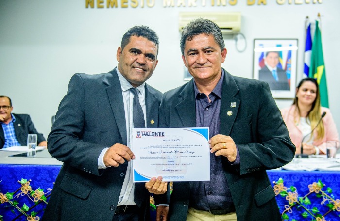 No seu pronunciamento durante sessão especial pelos 60 anos de Valente na Câmara de Vereadores, que ocorreu na noite de terça (14), o prefeito Marcos Adriano de Araújo, se emocionou ao ser homenageado pelos vereadores da Casa. O vice-prefeito Regi Mota, que foi vereador da Casa Nemésio Martins, também foi homenageado e se emocionou com a citação no plenário.
