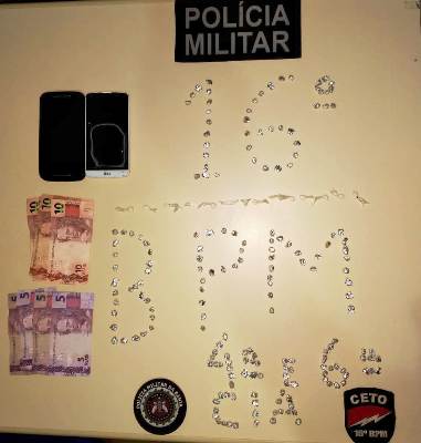 De acordo com a PM, os mesmos foram alcançados e com eles encontradas 189 pedras de uma substância aparentando ser crack, 13 petecas de uma substância aparentando ser cocaína, 02 aparelhos celulares e a quantia de R$ 50,00 em espécie.
