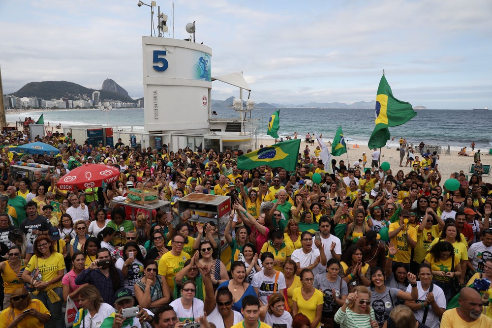 Os apoiadores de Bolsonaro se concentravam na Avenida Atlântica, em Copacabana, Zona Sul do Rio, na altura do Posto 5. A Polícia Militar acompanha a manifestação. O sentido Leme da via foi interditado às 15h no trecho.