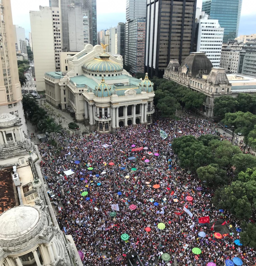 No Rio, manifestantes contrários ao candidato se reuniram na Cinelândia, no Centro, no início da tarde. Inicialmente, a concentração foi em frente ao Cine Odeon. Às 17h, parte dos manifestantes deixou a Cinelândia e seguiu em passeata por ruas do Centro do Rio. Ainda não há estimativa de público.