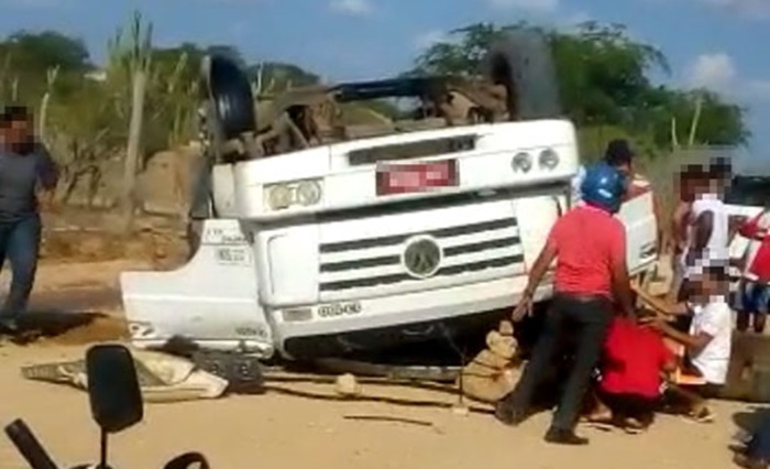 Um caminhão-pipa modelo VW/13.180, de cor branca, com placa de Tucano, capotou na tarde desta segunda-feira (17) em uma estrada vicinal nas proximidades da localidade conhecida como ‘Terra Dura’, entre o distrito de Pedra Alta e a sede do município de Araci, na região sisaleira da Bahia.