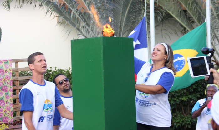 Secretária Perpétua acende a pira que deverá se manter acesa até o Dia da Pátria | Foto: Raimundo Mascarenhas