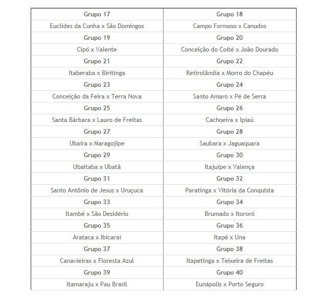 A sexta rodada teve como destaques cinco goleadas e 109 gols marcados. Euclides da Cunha superou Paulo Afonso, por 7 a 0; Cachoeira aplicou 6 a 0 em Sapeaçu; Conceição do Coité goleou Ichú por 4 a 0; Valença bateu Ituberá por 5 a 0; e Itapetinga venceu Pau Brasil por 4 a 1. Quatro jogos terminaram com o placar em branco: Paratinga 0x0 Brumado, Ubaitaba 0x0 Santo Antônio de Jesus, Biritinga 0x0 Retirolândia e Cipó 0x0 Canudos.