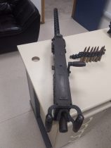 A arma, uma metralhadora antiaérea do Exército americano, mede 1,68 metro de comprimento e pesa 38 quilos. Tem a capacidade de disparar de 400 a 600 tiros por minuto.