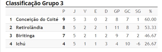 Outro resultado que ajudou muito para que Coité encerasse a 5ª rodada em primeiro lugar do grupo foi a vitória de Ichu sobre a seleção de Biritinga por 1 a 0 e consequentemente colocou a equipe no páreo em busca de uma vaga na última rodada em jogo contra Coité no estádio Diovando Cunha.