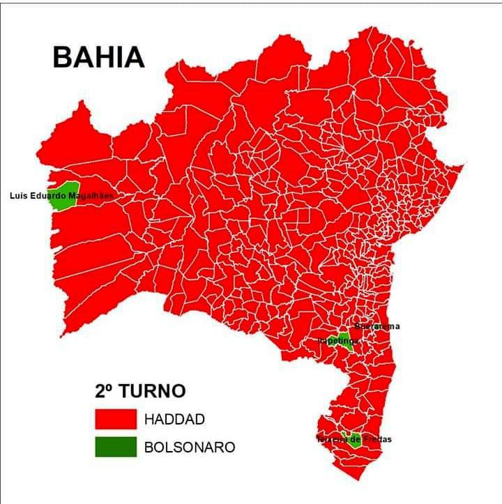 Veja como ficou o mapa da Bahia com a vitória de Haddad representada pela cor vermelha