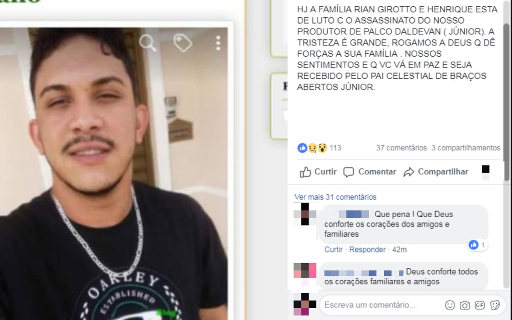 “Hoje, a família Rian Girotto e Henrique está de luto com o assassinato do noss